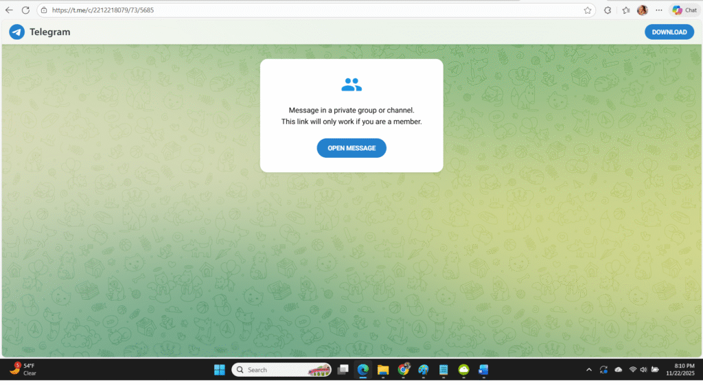 This is Telegram Link. You need to join Telegram to view this info.